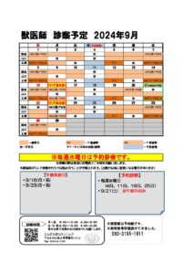 獣医師診療予定2024年9月